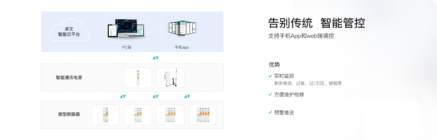 智能通讯电源设备是连接智能融合微型断路器和云端平台之间的通讯传输器,有通讯管理、数据传输、协议转换、数据处理转发等功能,是JNTY江南智慧用电通信系统的心脏。智能通讯电源采集微型断路器的数据,把数据高效、安全的上传至平台,同时支持平台对设备远程控制指令下发。发挥设备物联,节能降耗,智慧化管理的作用。
